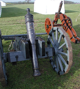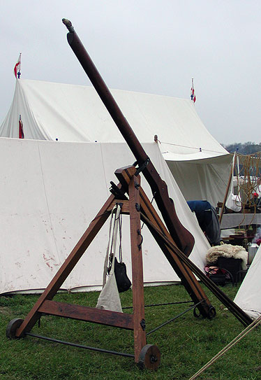 Tripod gun. One type of projectile was a large arrow in place of a ball. The bags tied to it could carry powder or an inflammable substance that could have proved destructive should the arrow have stuck into a wooden wall or thatch roof.